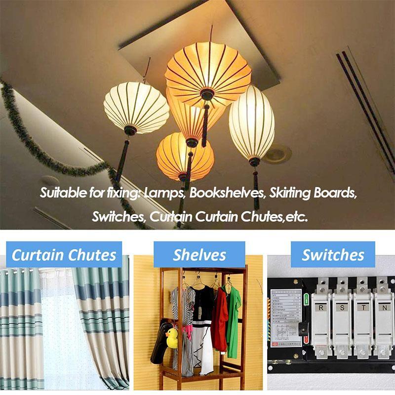 Perfect for cavity anchor plasterboard fixing, widely used in drywall, hollow block, plaster, tile, perfect for hanging curtain rods, lamps, photo frames, coat racks, power switches. Convenient for your daily life.